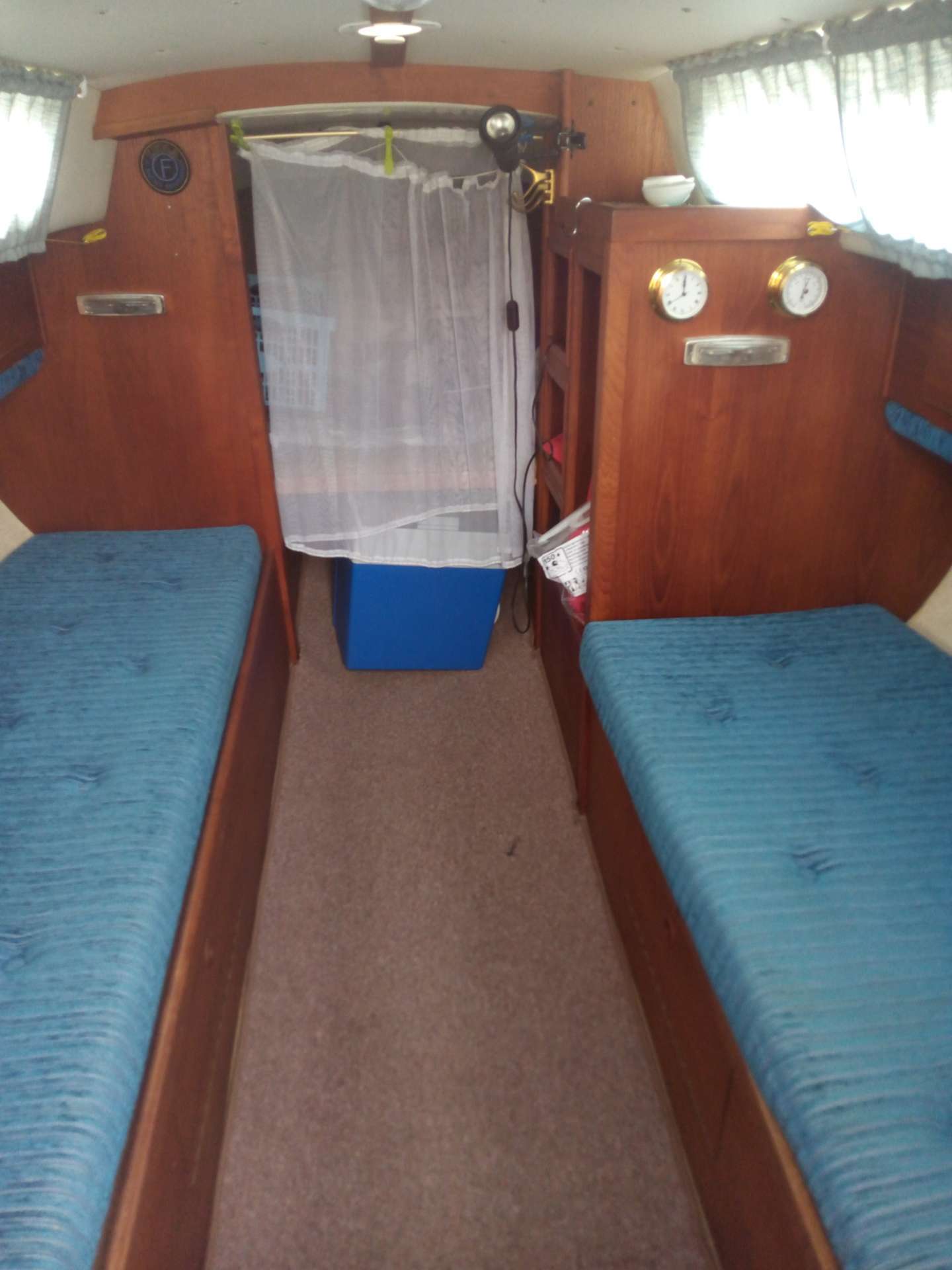 Spibaum, Spinnaker-Rigg, Teakholzgräting im Cockpit, Bugkorb, doppelte Seereling, Badeleiter, Qualitätsteppich, 4-teilige Cockpit-Sitzgarnitur, 4 Festmacher mit Nirofedern, 4 Fender, TÜV-Ausrüstung, Toplampe, Vorschiffskojendreieck, Borduhr, Barometer, Segelpersenning, Cockpit/ Vollpersenning, Sprayhood, 10 kg Anker, Genua 15 m², Großsegel 16 m², Flasher mit Talje und Schoten 46 m², Sturmfock 5,8 m² mit Extraschoten, doppeltes Vorstag/ Rollfock